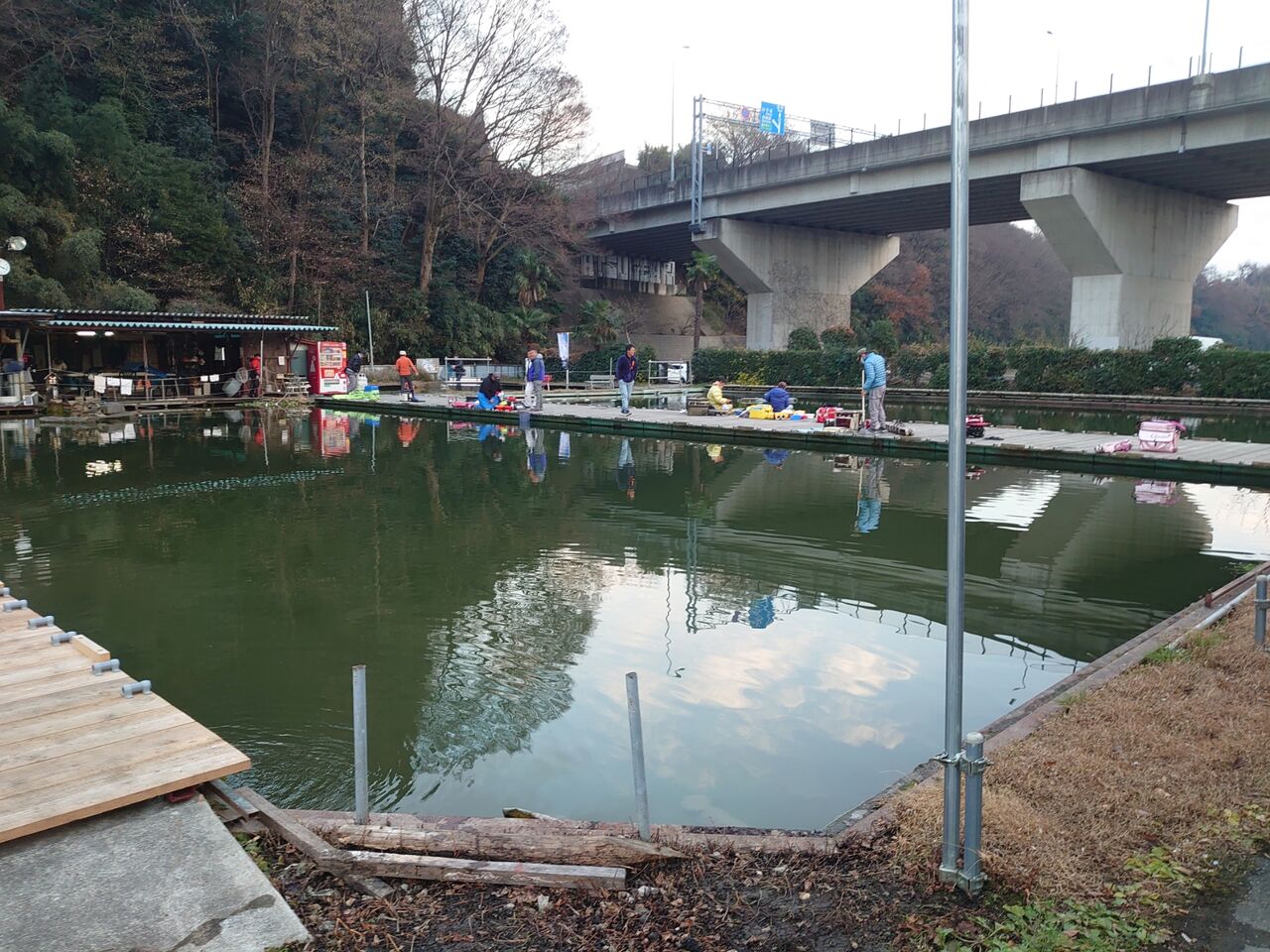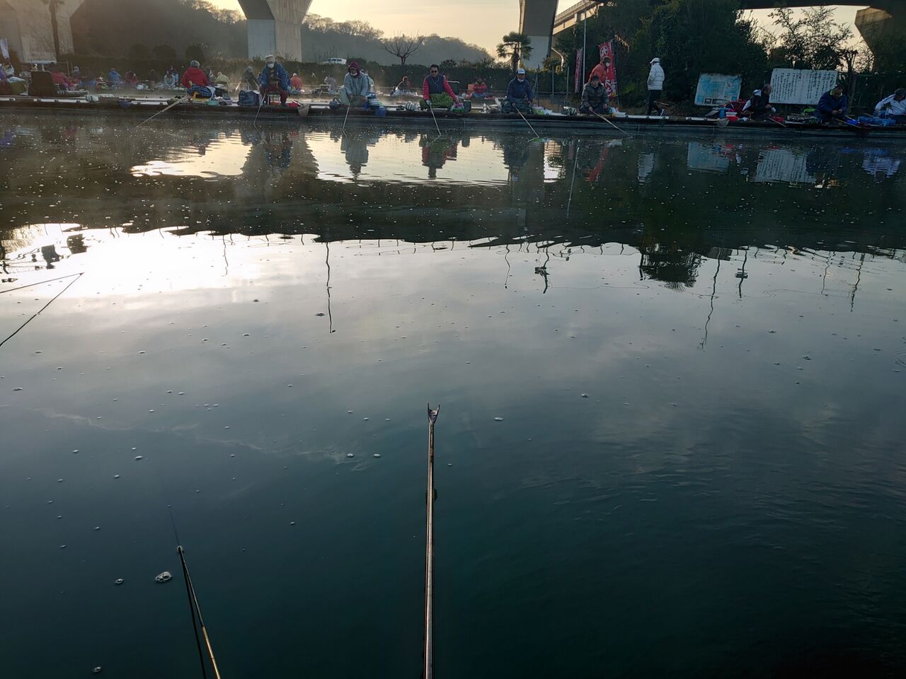6時半に開門し、小池の北側中央付近に3人で並びます。
