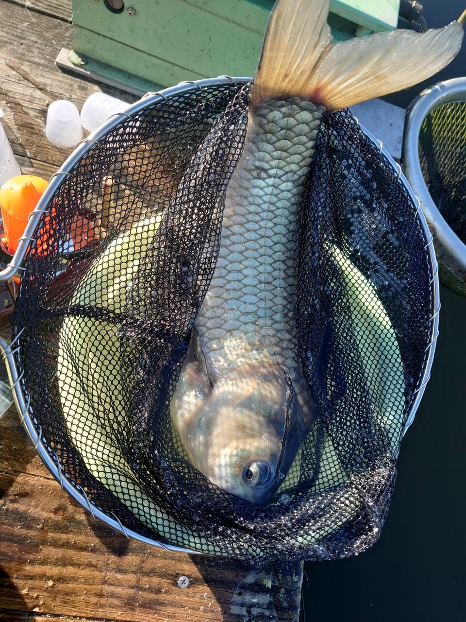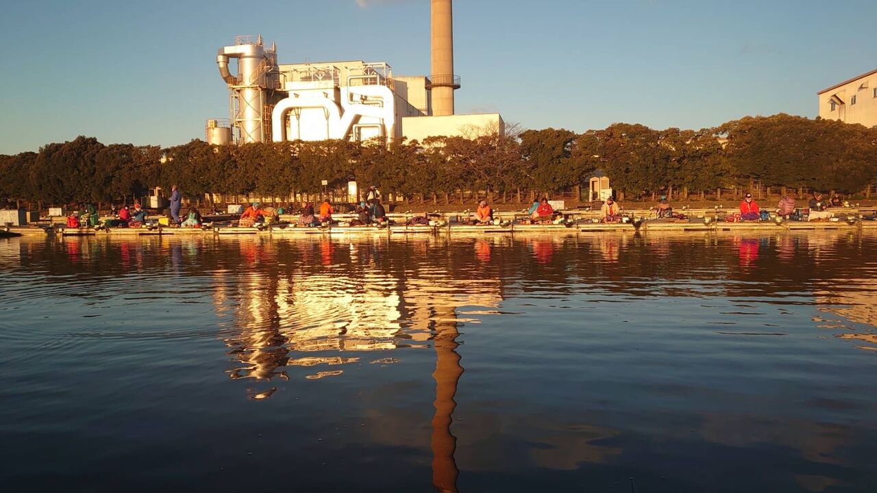 練習と違い(練習時は、左が2席空き、右が1席空き)、左右に人が隙間なく入ったことで、手前の魚が警戒したのか、釣れるサイズも一回り小さくなっていました。