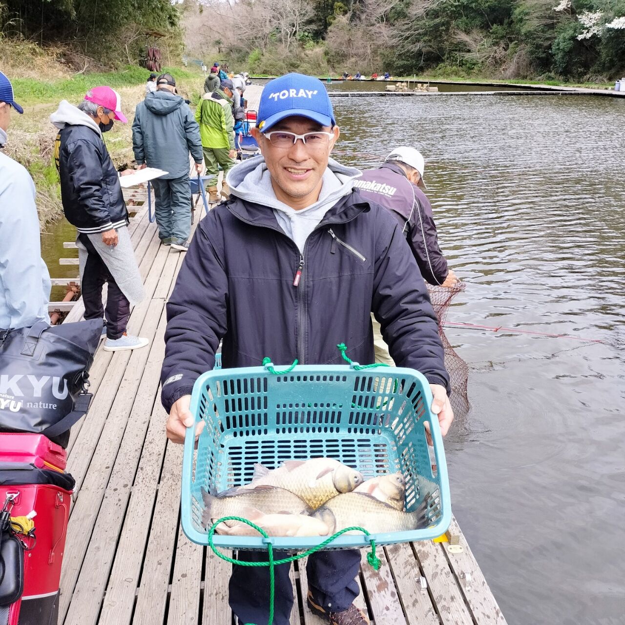 並びの21尺の両グルテンバランスの底釣りが好調に竿を曲げており、嫌でも目につきます。