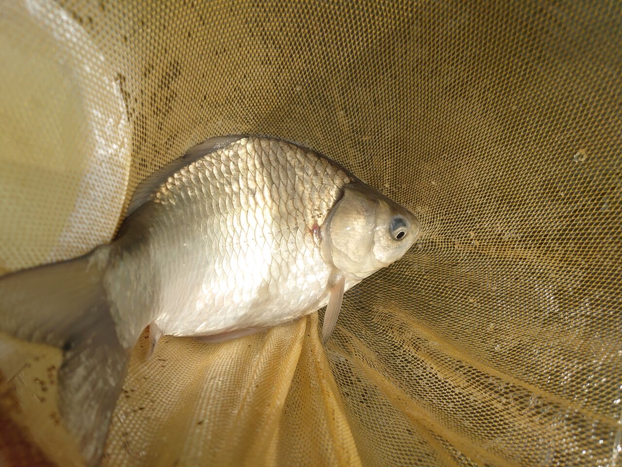 やはりウキの動きは良くなく、辛抱強く打ち返し、約40分後に1枚キャッチ。