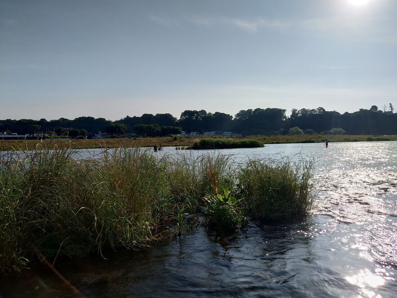 高田橋の下流の中州が終わり、その下の中州の右岸寄りに空いている場所を発見。
