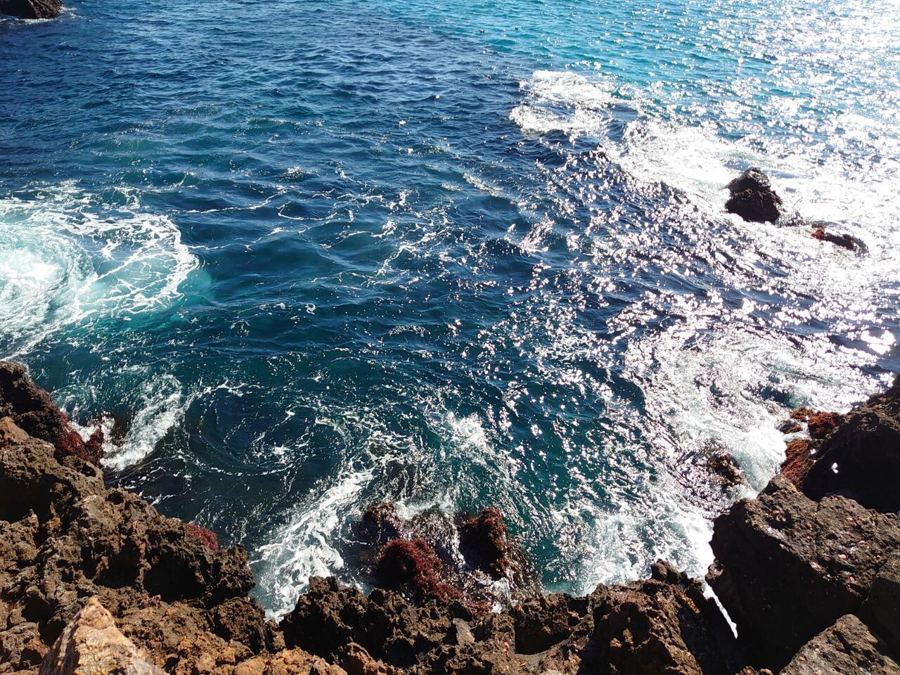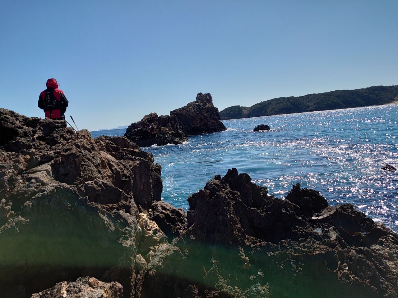 私は向かいの磯との水道側。左右に水中岬が張り出し、足元にも岩があり、やや浅めの地形です。