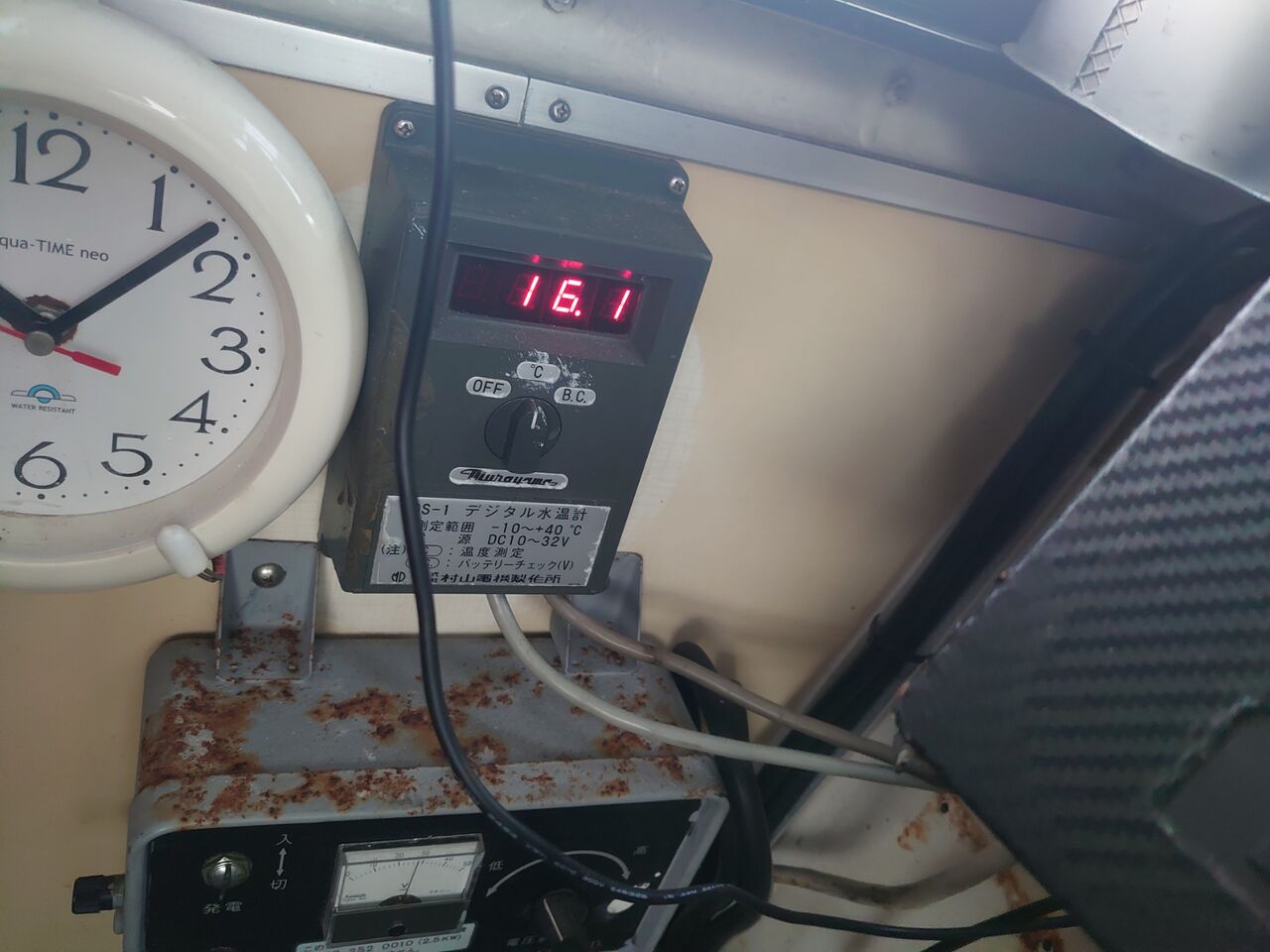船の水温計は16度前後。
