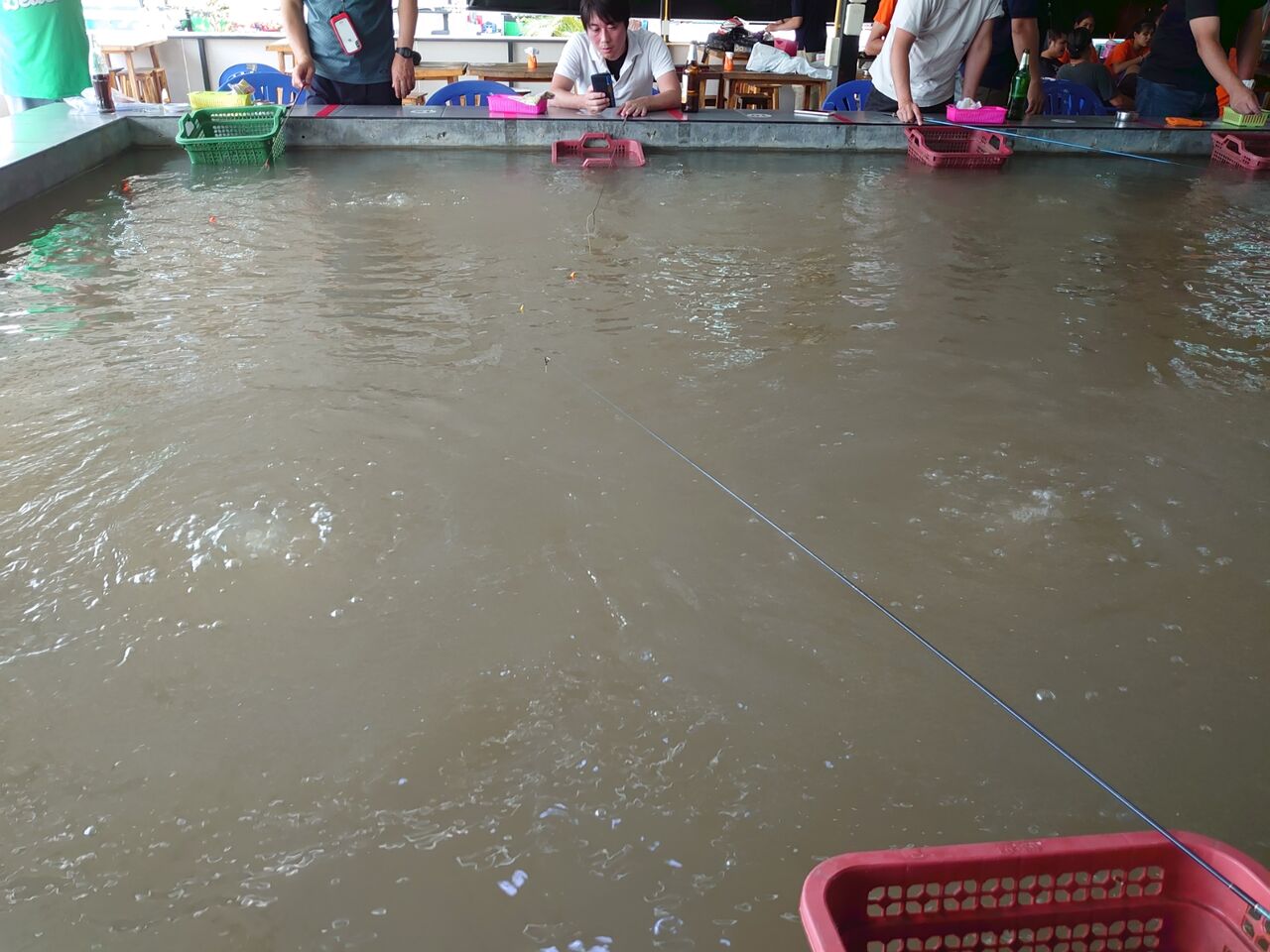 アジアではエビ(オニテナガエビ)の釣堀が多くあります。