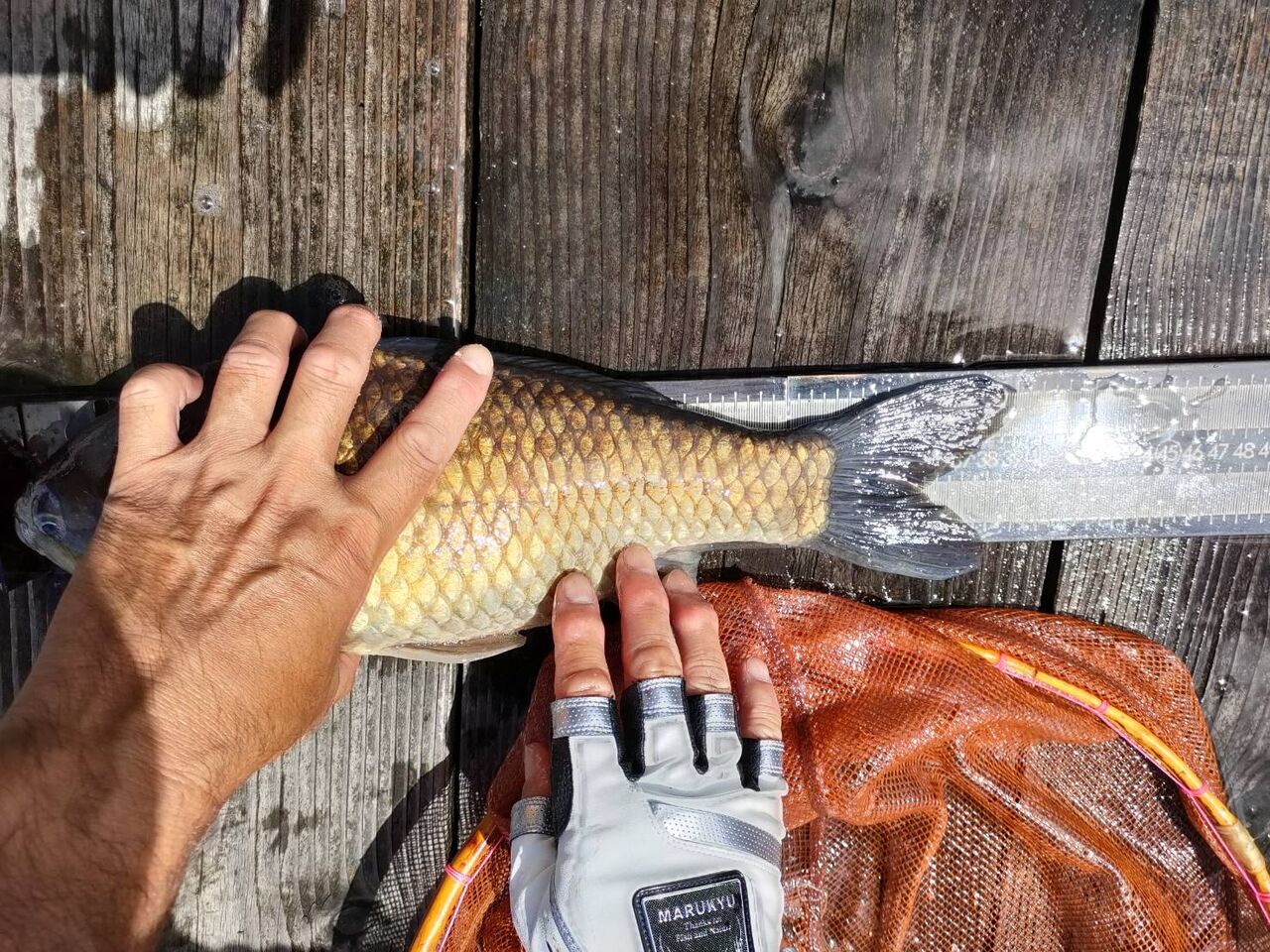 針掛かりした場所もよく、無事に45アップのブラウンゲット。