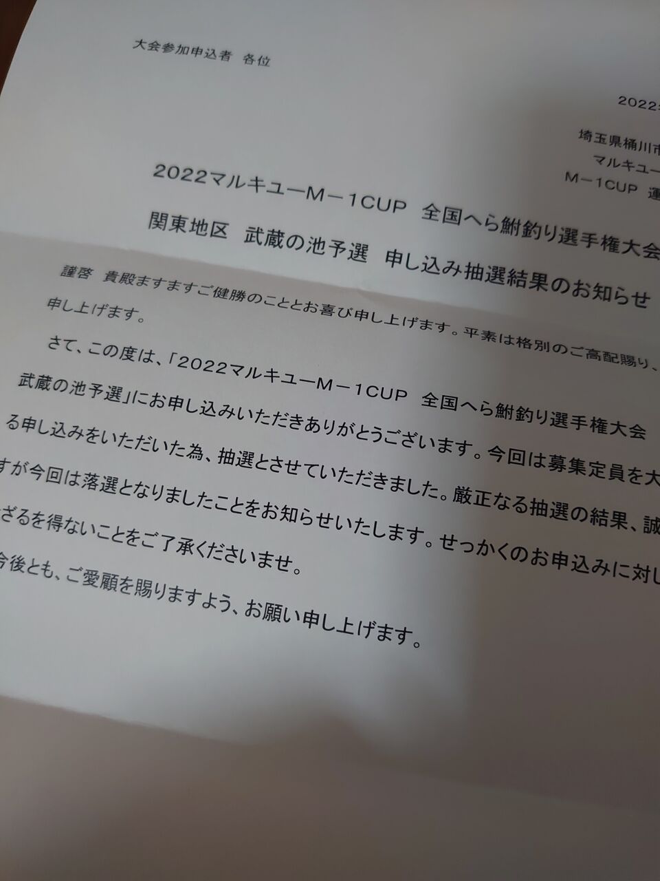 5月15日の入間、中木の予選は当選しましたが、今回は辞退します。